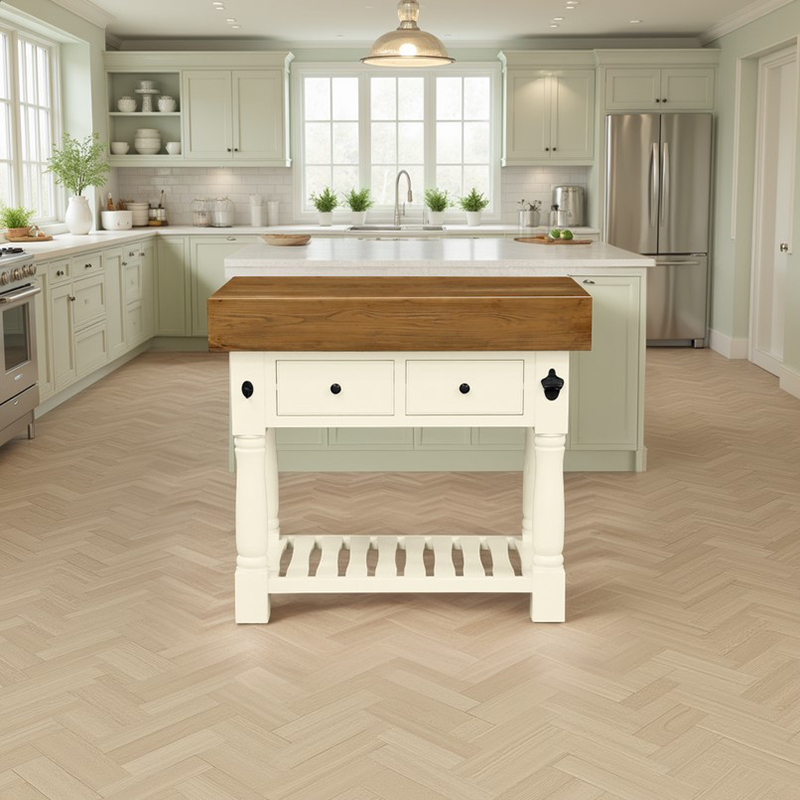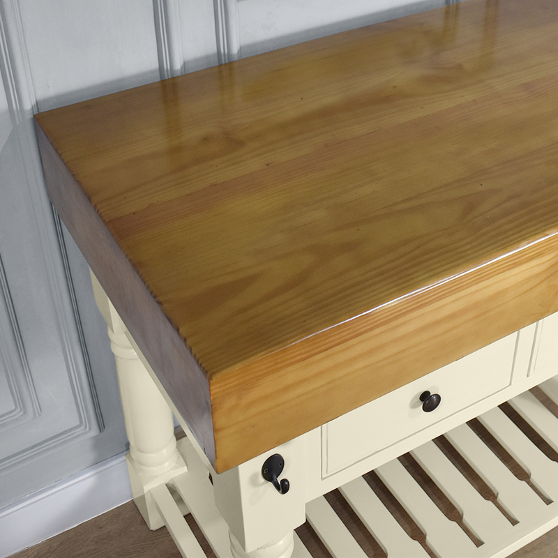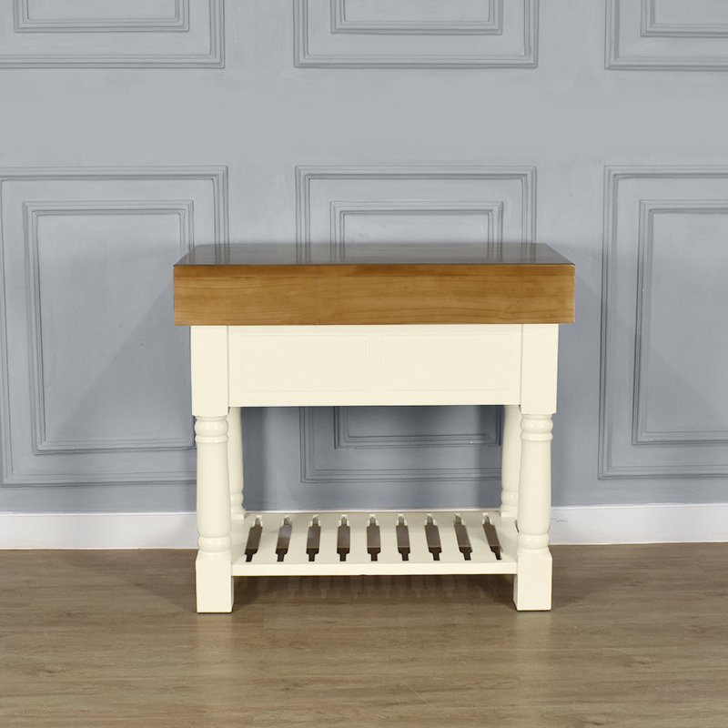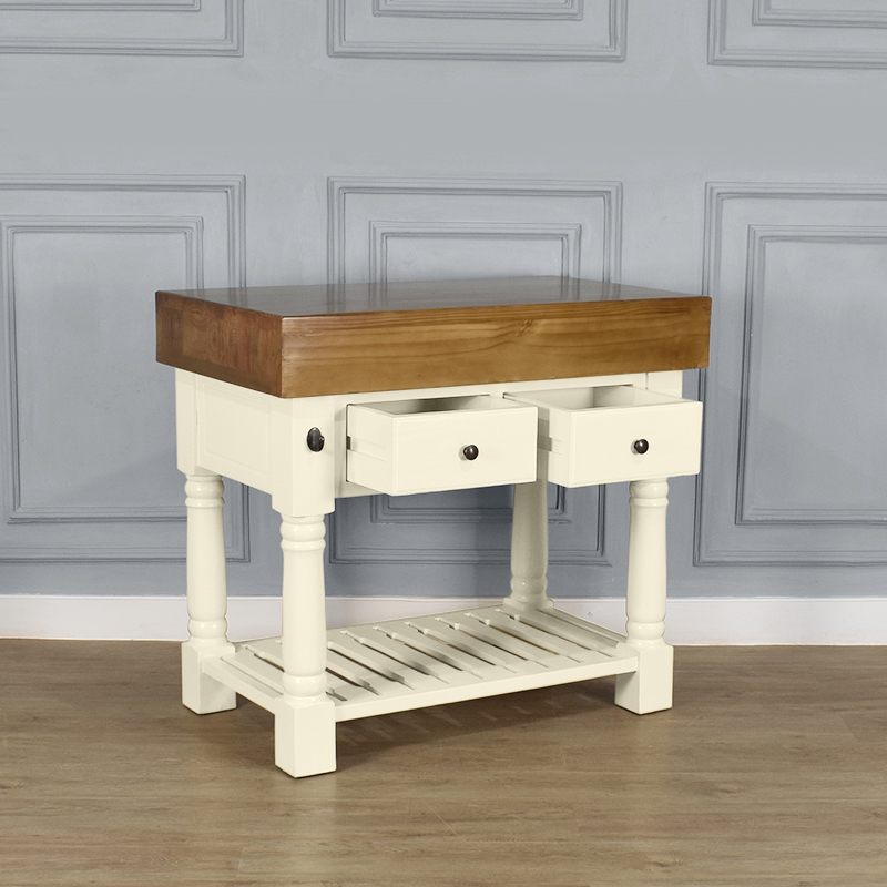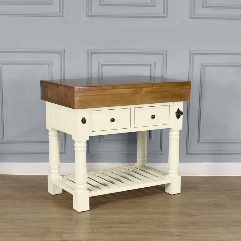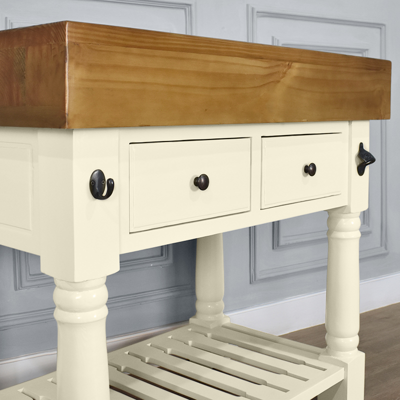 Butchers Block Kitchen Island – Heavy Top – French Ivory Colour – 2 Drawers