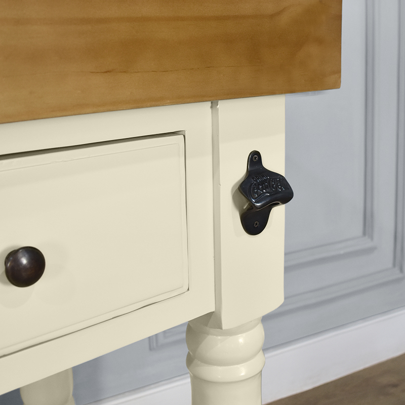 • This butchers block combines solid hardwood top in French oak colour and French Ivory painted frame for a contemporary take on the classic country farmhouse look.