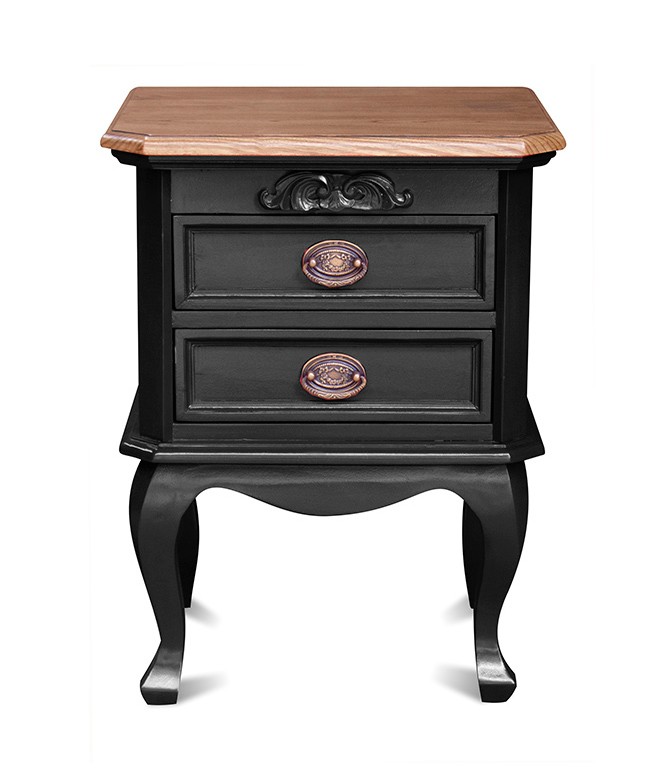 This beautiful Chantilly bedside cabinet is made from solid mahogany wood, and is hand polished and finished to a beautiful satin patina in China Black with a warm antiquing glaze.This is our own design inspired by the Louis XVI era of French Style Furniture circa 1775. The two drawers are ideal for storage and bedside lamps and will look stunning in the bedroom making it the perfect compliment to the Chantilly sleigh bed collection.