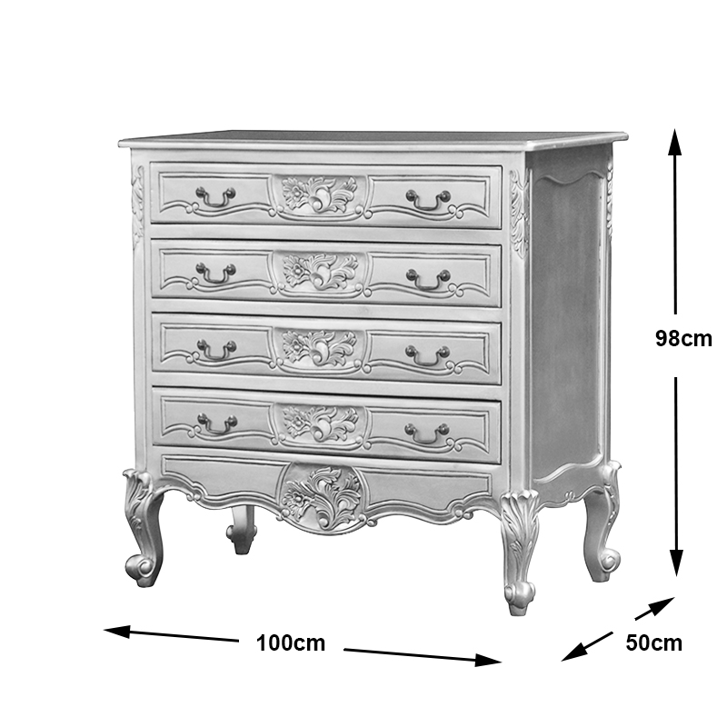 • Fine hand carved detail and ornate brass handles in the Louis XV style.