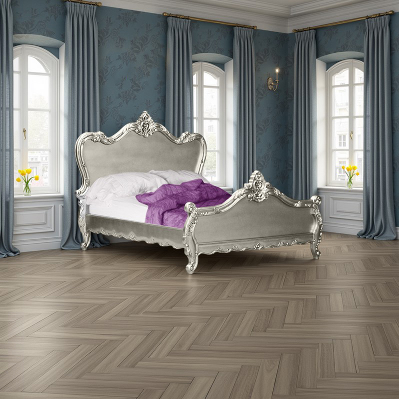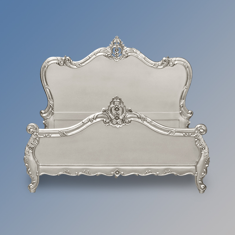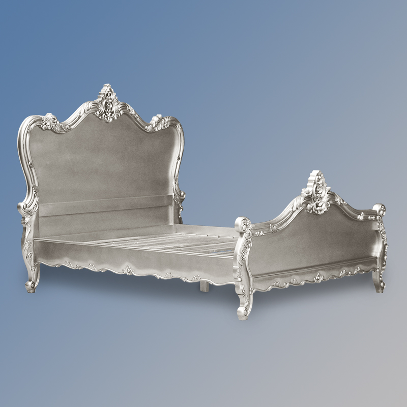 Louis XV Angelique Sleigh Bed in Silver Leaf