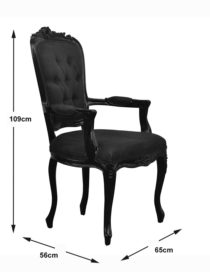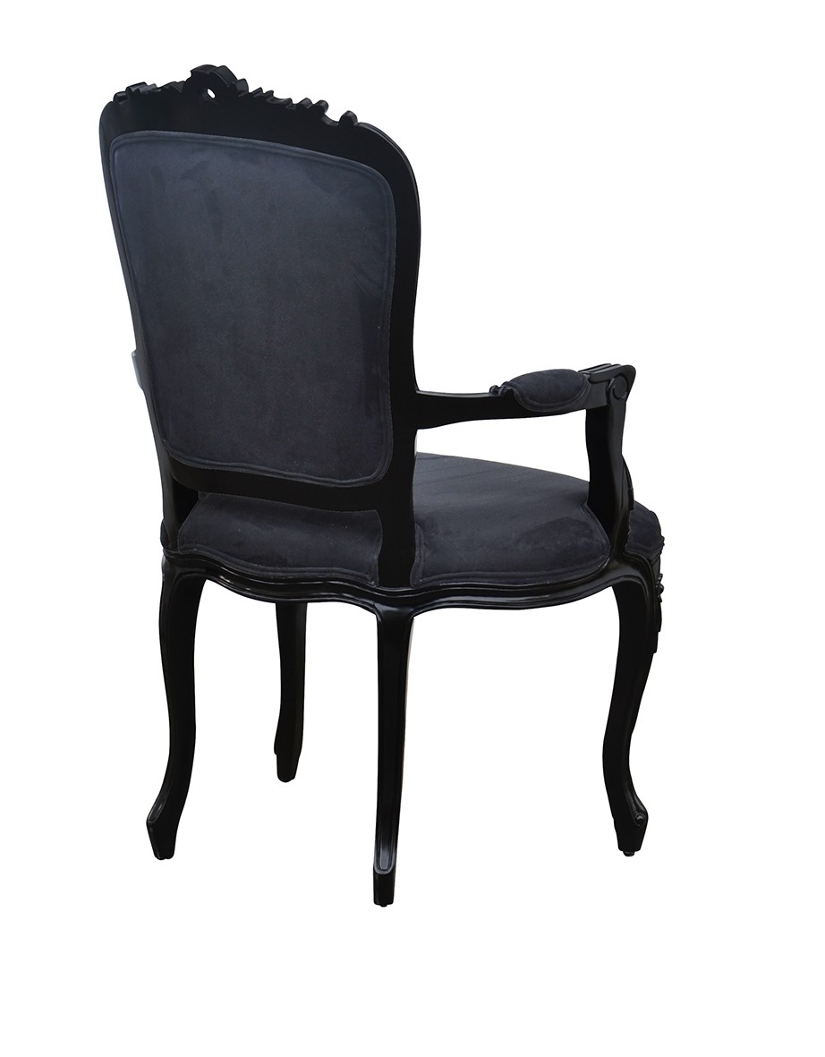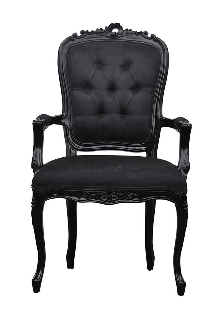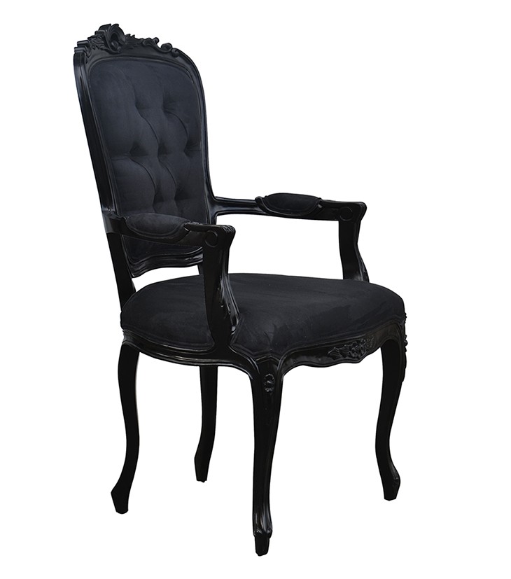 Louis Xv Elise Arm Chair – Black Frame Brushed Black Satin