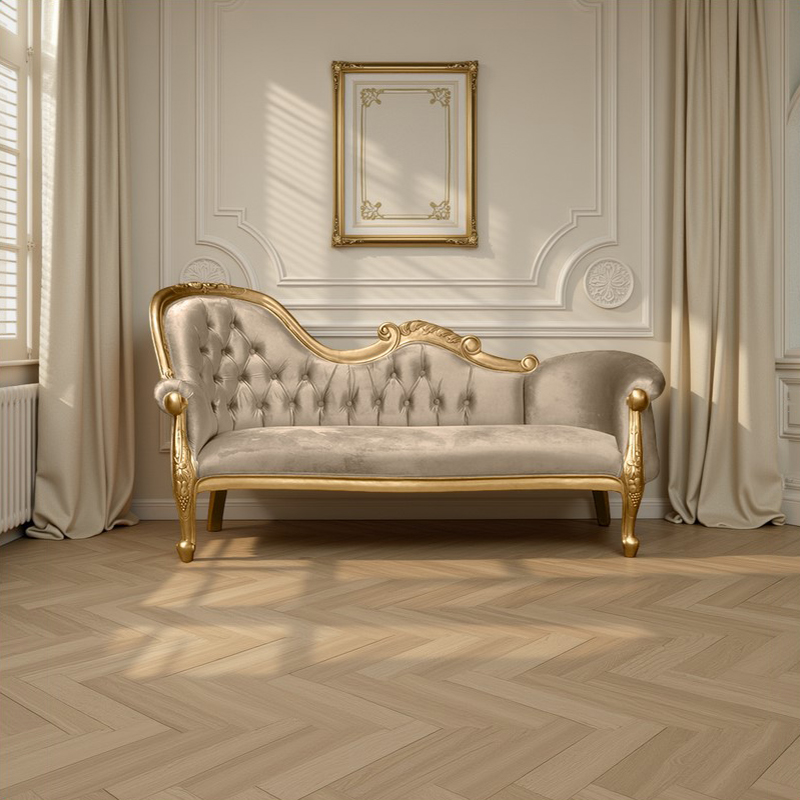 Louis XV – Versailles Single End Chaise Longue – Gold Frame and Gold Sand Upholstery