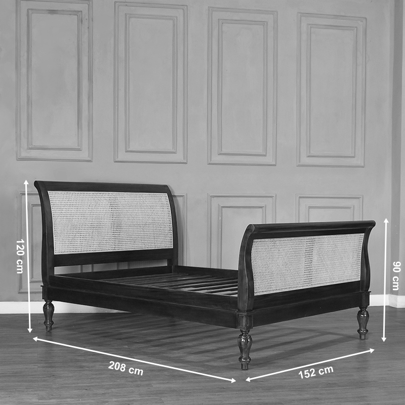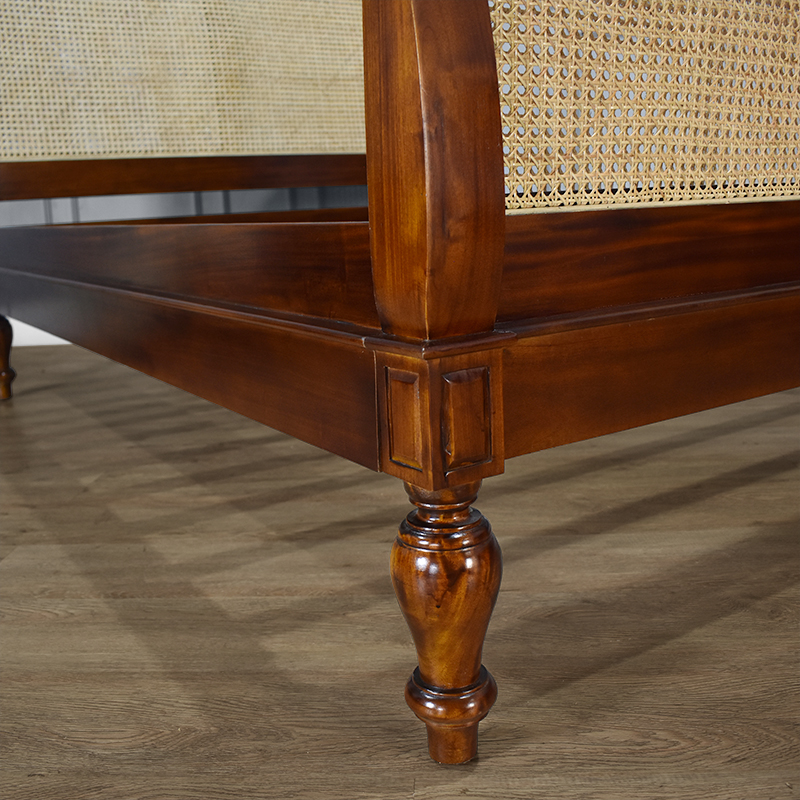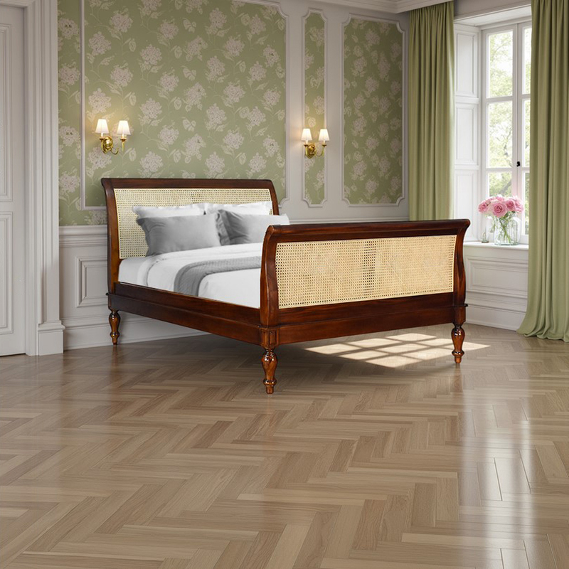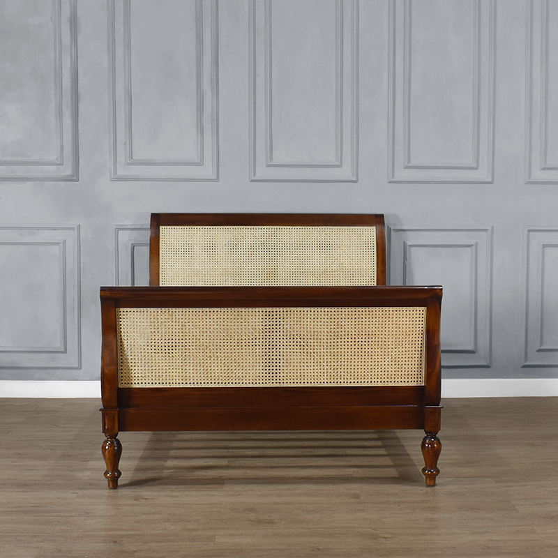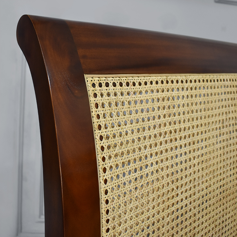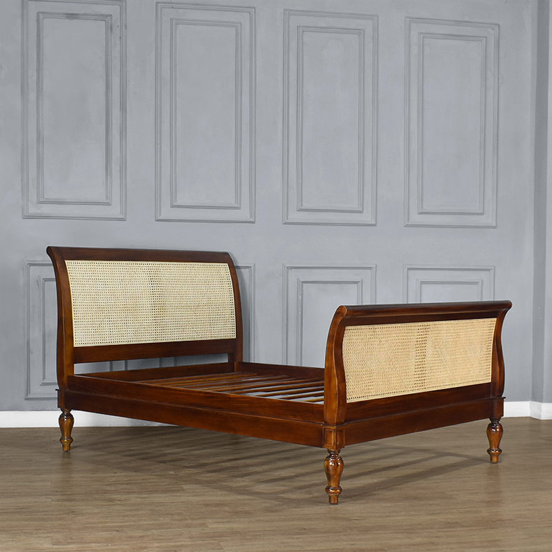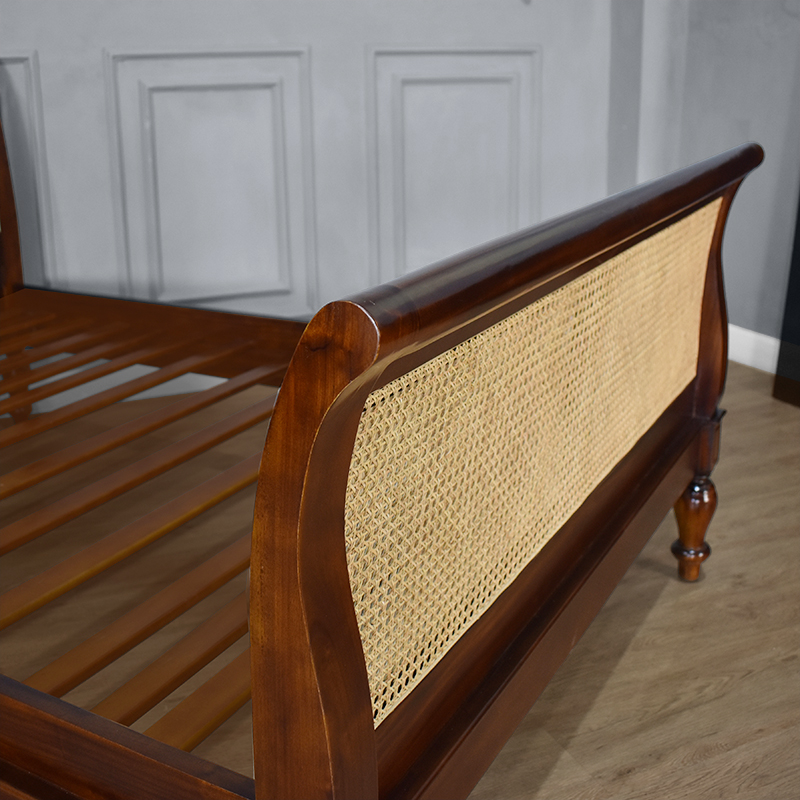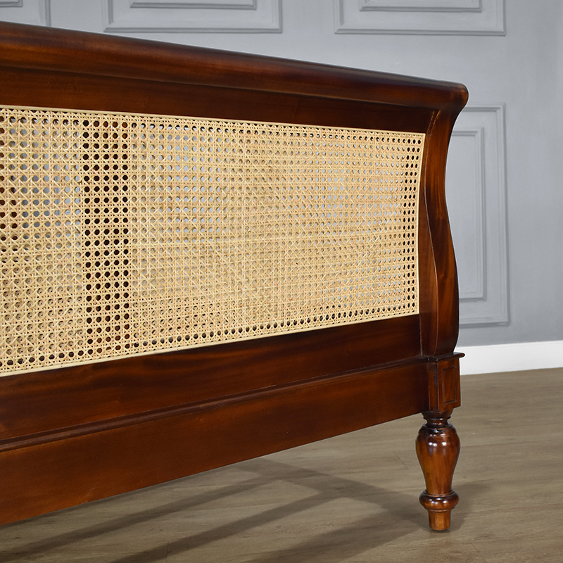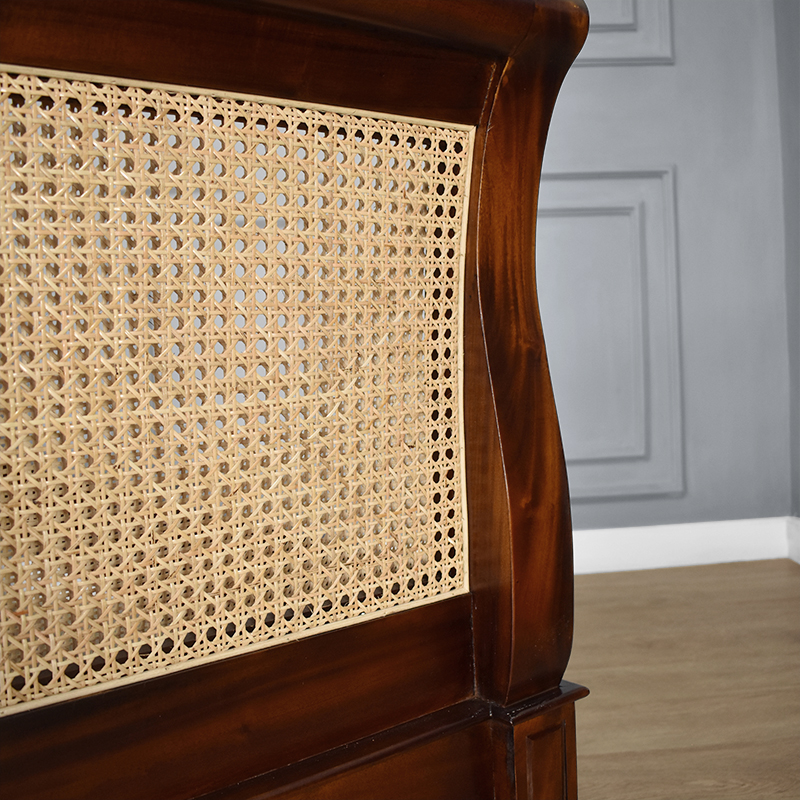 Montparnasse High End Sleigh Bed in Chestnut With Natural Rattan