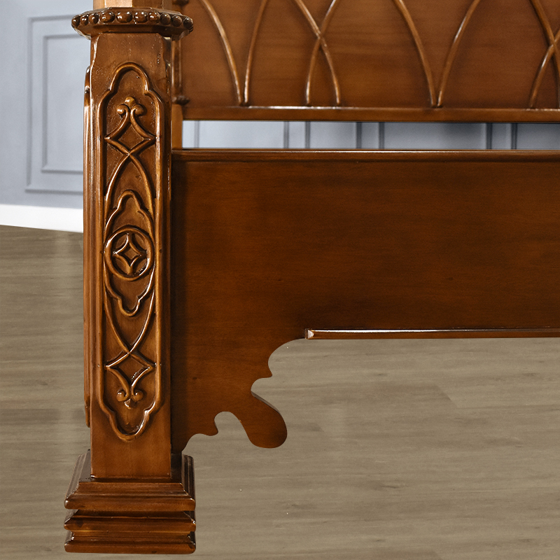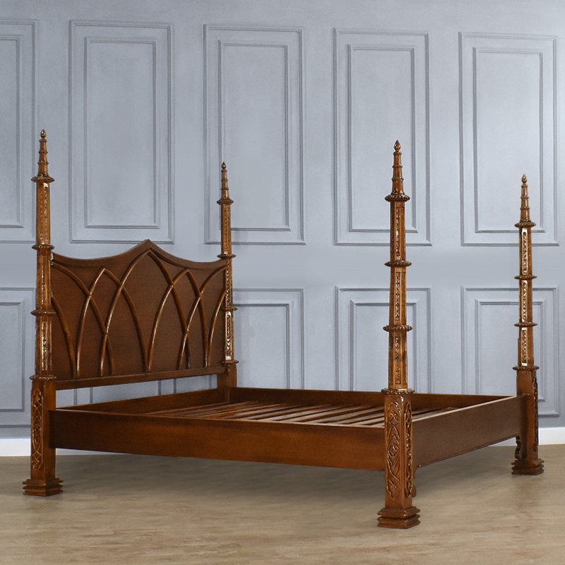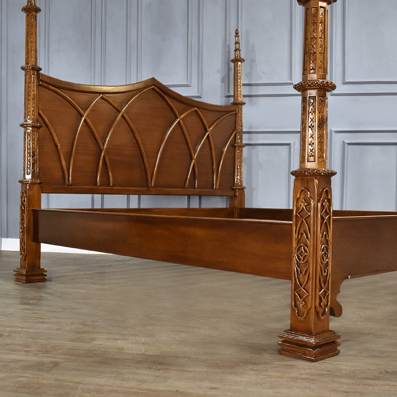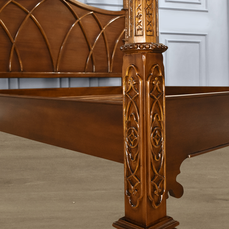 • With four corinthian posts and intricately hand carved head and foot board floral detail, our skilled craftsmen have used the finest solid hardwood to recreate this beautiful piece of furniture which is