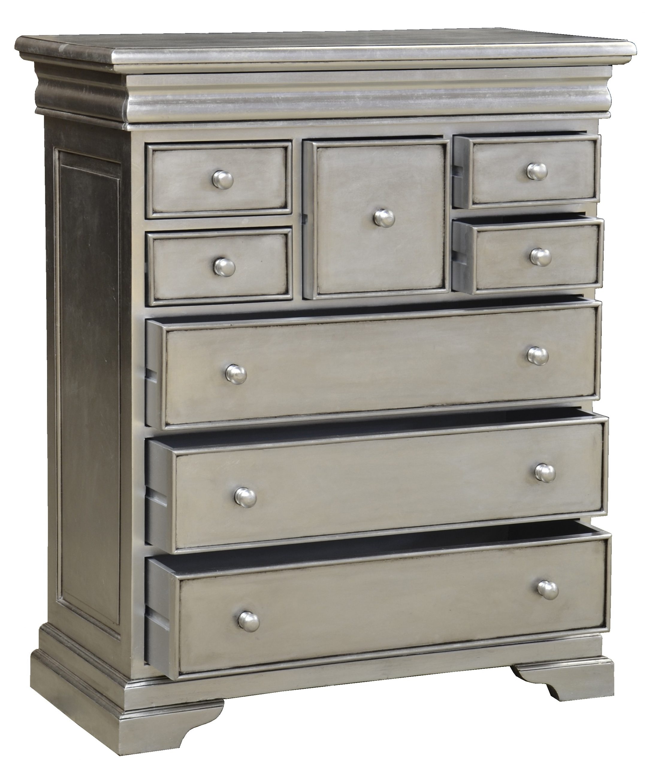 Versailles 9 Drawer Tall Chest – Silver Leaf