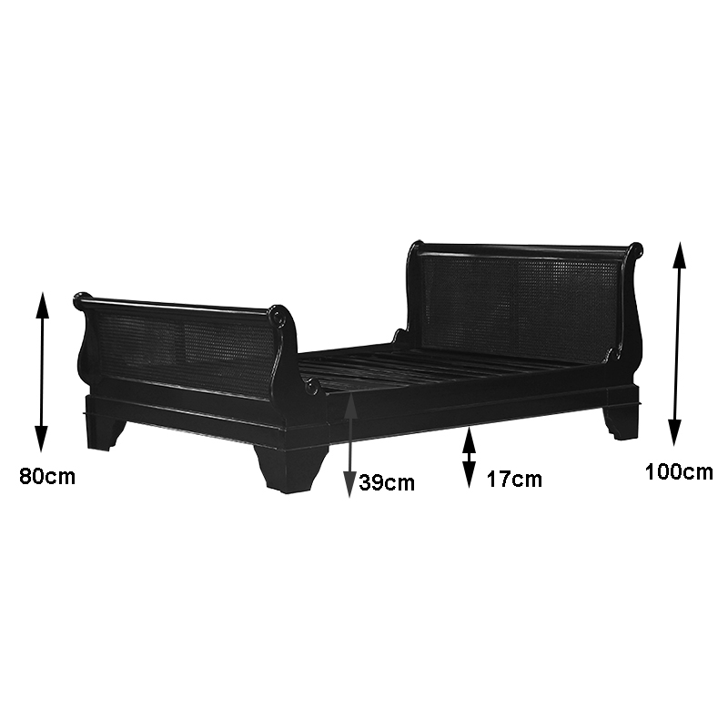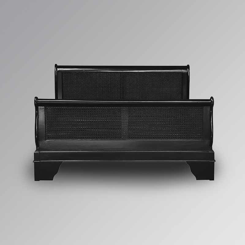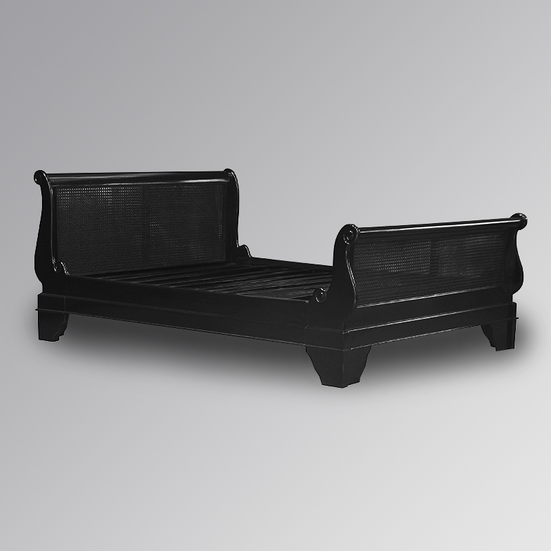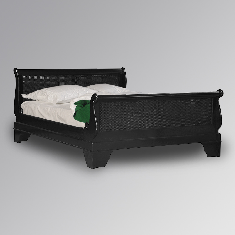 Versailles Sleigh Bed with Caned Rattan Headboard in French Noir
