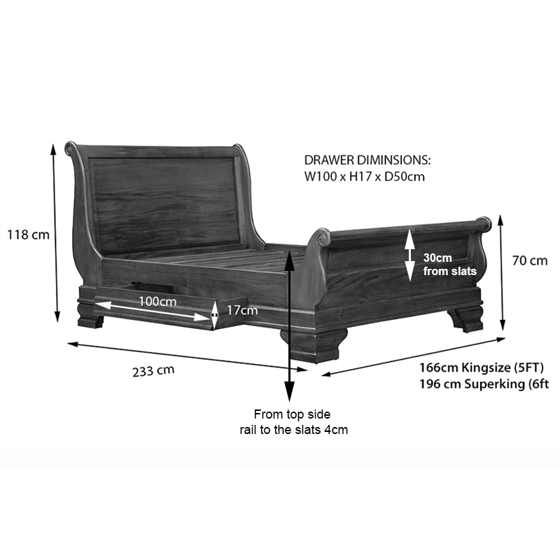 | Size | Single 3ft, Double – 4ft 6in, Kingsize – 5ft, Superking – 6ft, Emperor – 7ft |