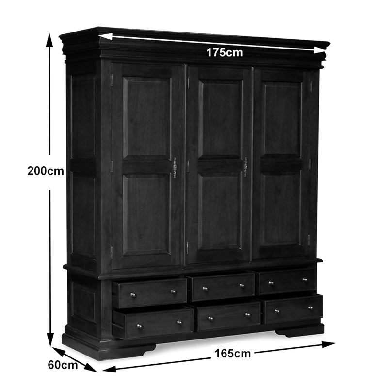 Versailles Triple Armoire 6 Drawer Wardrobe – French Noir