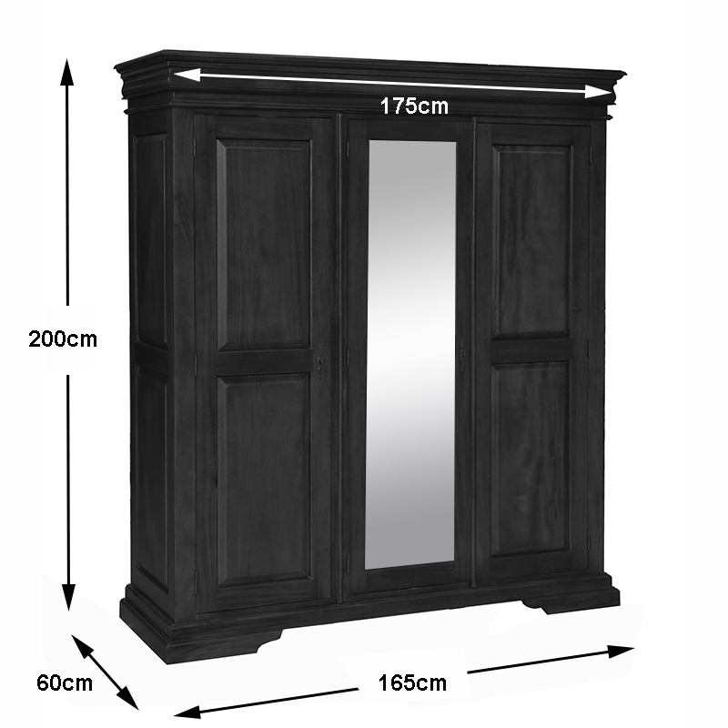 Versailles Triple Wardrobe – Centre Mirror – French Noir